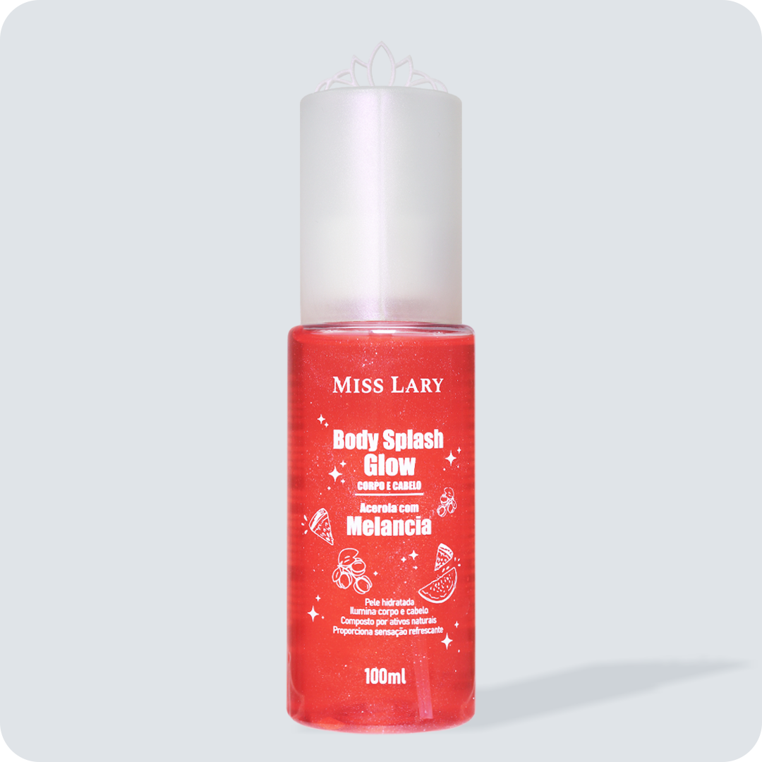 Sinta-se revigorada e iluminada com o Body Splash Glow de Acerola & Melancia da Miss Lary! Com extratos naturais de melancia, acerola e Ester de Oliva, ele proporciona hidratação suave e toque sedoso à pele e aos cabelos, enquanto suas partículas de brilho delicadas realçam o glow natural do corpo.