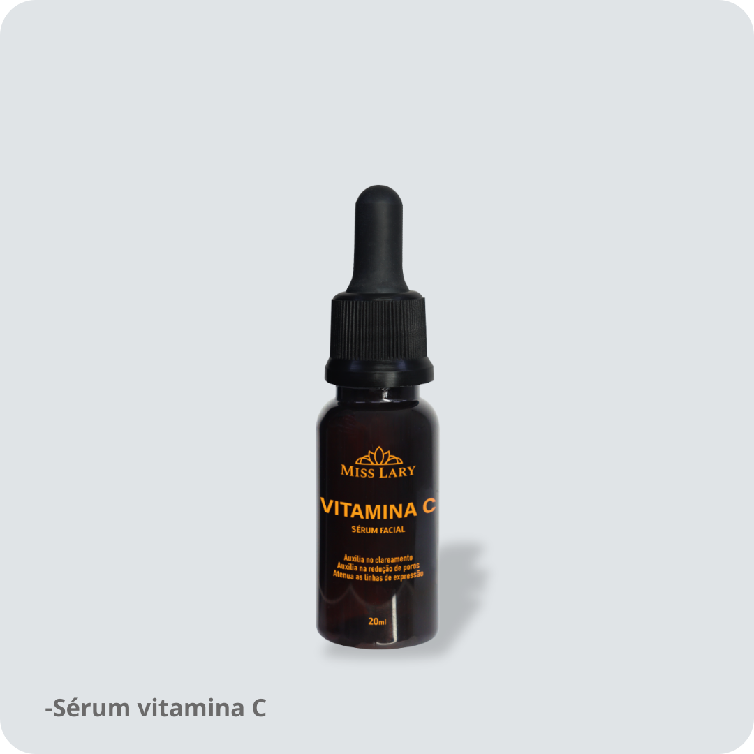 O Sérum Vitamina C da Miss Lary, é um rejuvenescedor com múltiplos benefícios. Sua fórmula conta com Vitamina C, Óleo de Romã, Vitamina E e Esqualano que promovem renovação celular, redução dos sinais de envelhecimento e linhas de expressão, clareamento e uniformização do tom da pele, efeito tensor e ação antioxidante. Sem parabenos. O Sérum Vitamina C é Vegano e livre de ingredientes de origem animal. (Auxília no clareamento, Ajuda na renovação celular, Uniformiza o tom da pele, Reduz os sinais de envelhecimento, Auxília na redução de poros, Melhora a firmeza da pele, Auxília na redução de linhas, Nutre o tônuz cutâneo)
