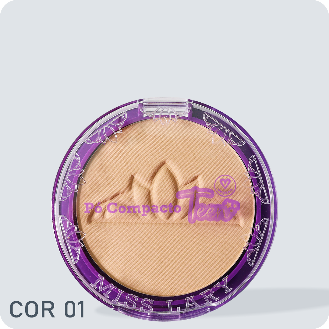 O Pó Compacto Teen possui toque aveludado, deixando a pele matte, mas sem ressecar. De cobertura média e textura fina, sua fórmula é vegana e a embalagem é prática e super moderna que você vai desejar ter na bolsa.